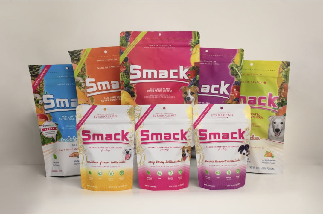 Founded in 2007, Smack formulates and manufactures raw, dehydrated food for dogs and cats, without any fillers or additives. Smack uses a unique, pathogen-killing process, which ensures food safety and a stable shelf life, while also preserving the highest nutritional content of vitamins and minerals. Smack focuses on superfood ingredients, sourcing Canadian-only protein which includes wild-caught BC salmon from an Indigenous-owned co-op, and Manitoba-raised pork and poultry, as well as organic, non-GMO fruits and vegetables. Smack products offer maximized health and performance, improved taste and aroma, and reduced illness and shedding for pets.