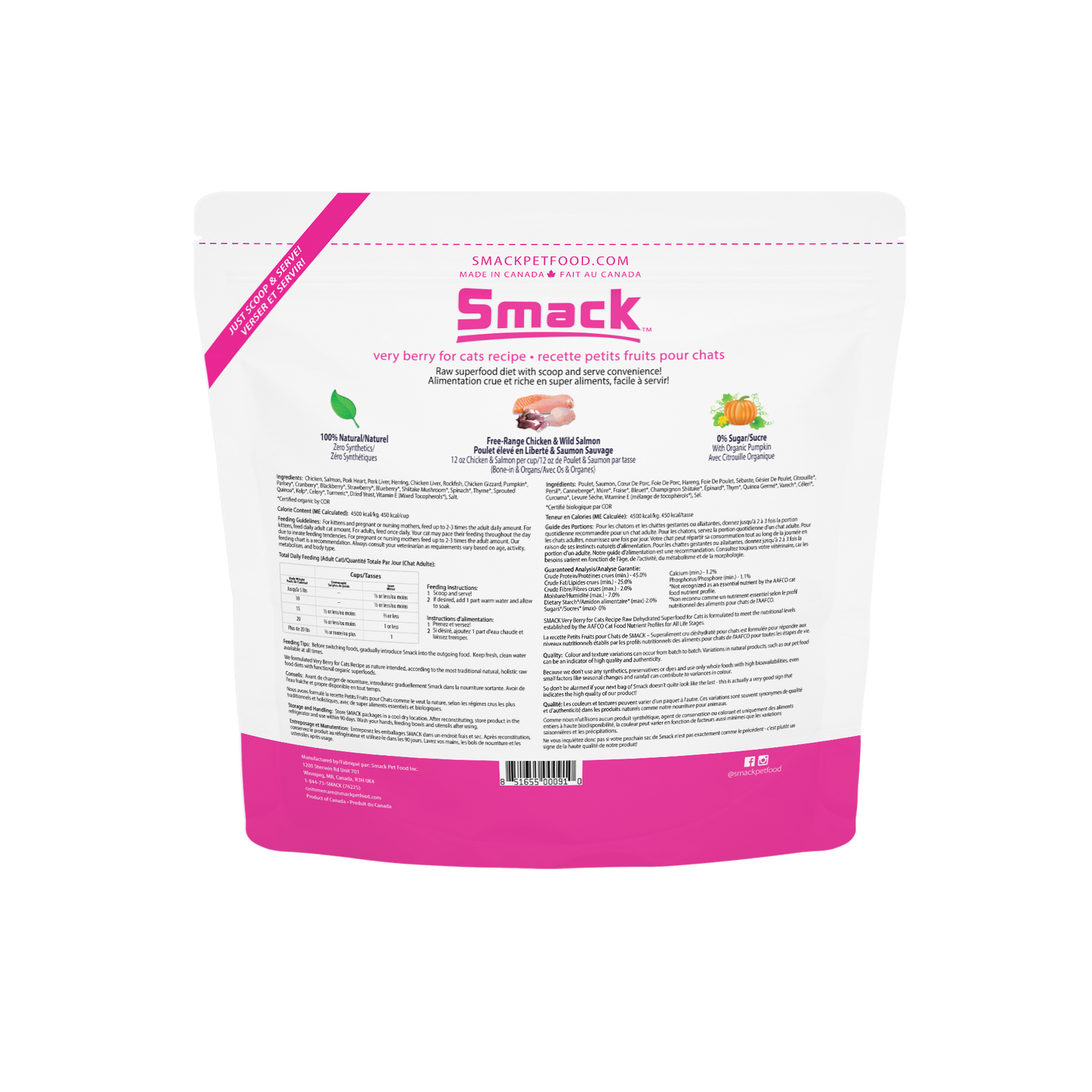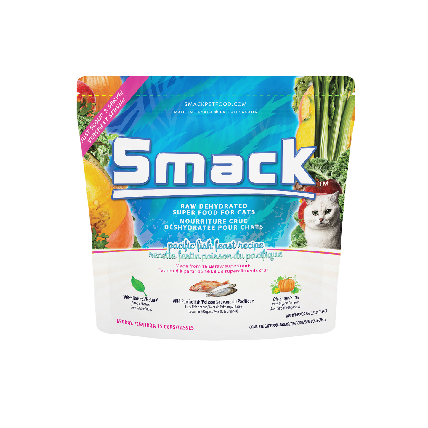 At Smack, we work hard to create the world’s best pet food.Smack's advanced, low-temperature dehydration method preserves the nutrients in our food through minimal processing which aids digestion. All of our foods feature a short list of the world’s best organic superfood ingredients, without any fillers such as legumes, lentils, peas, soy, corn, wheat, gluten, or grain.